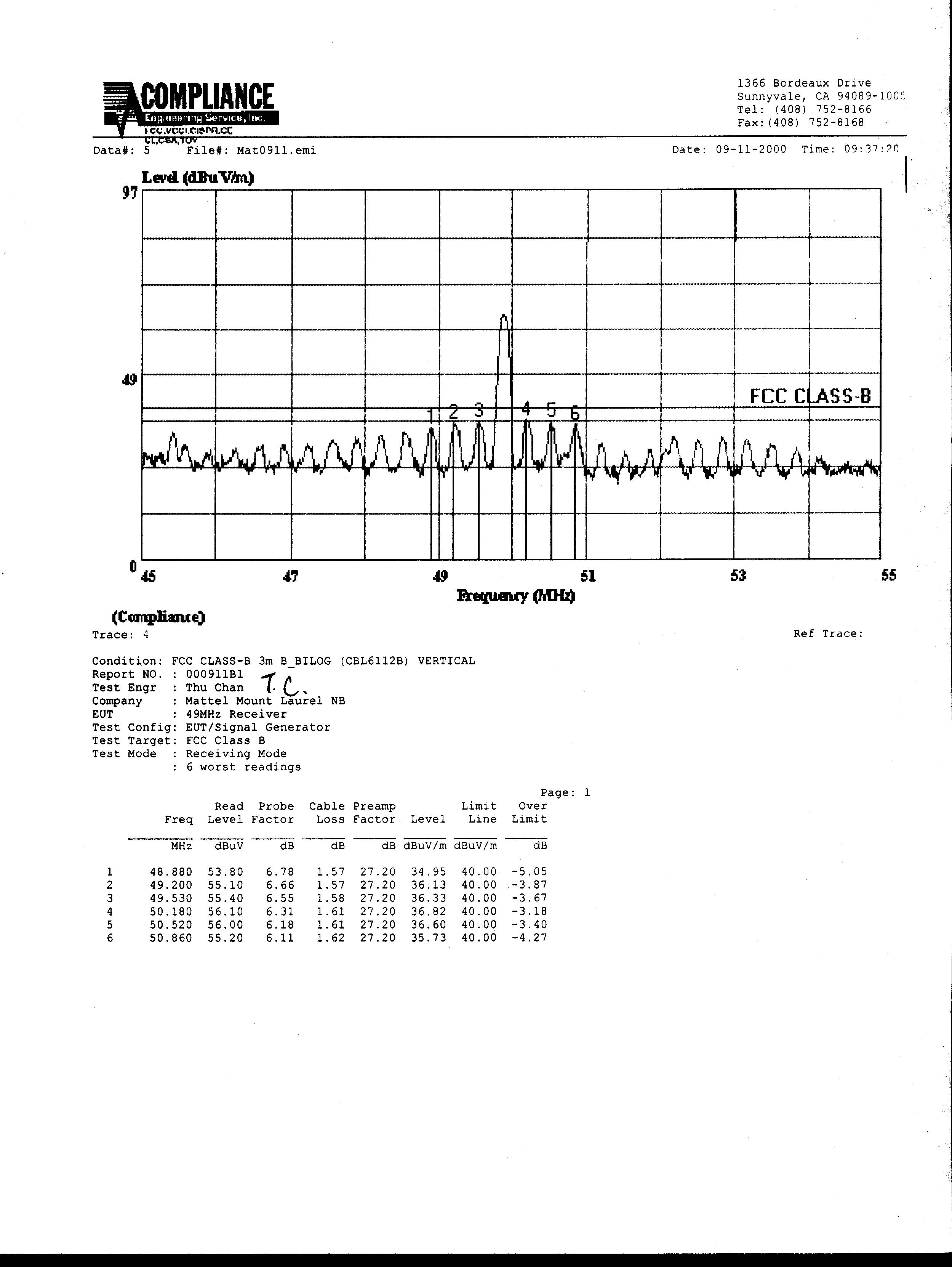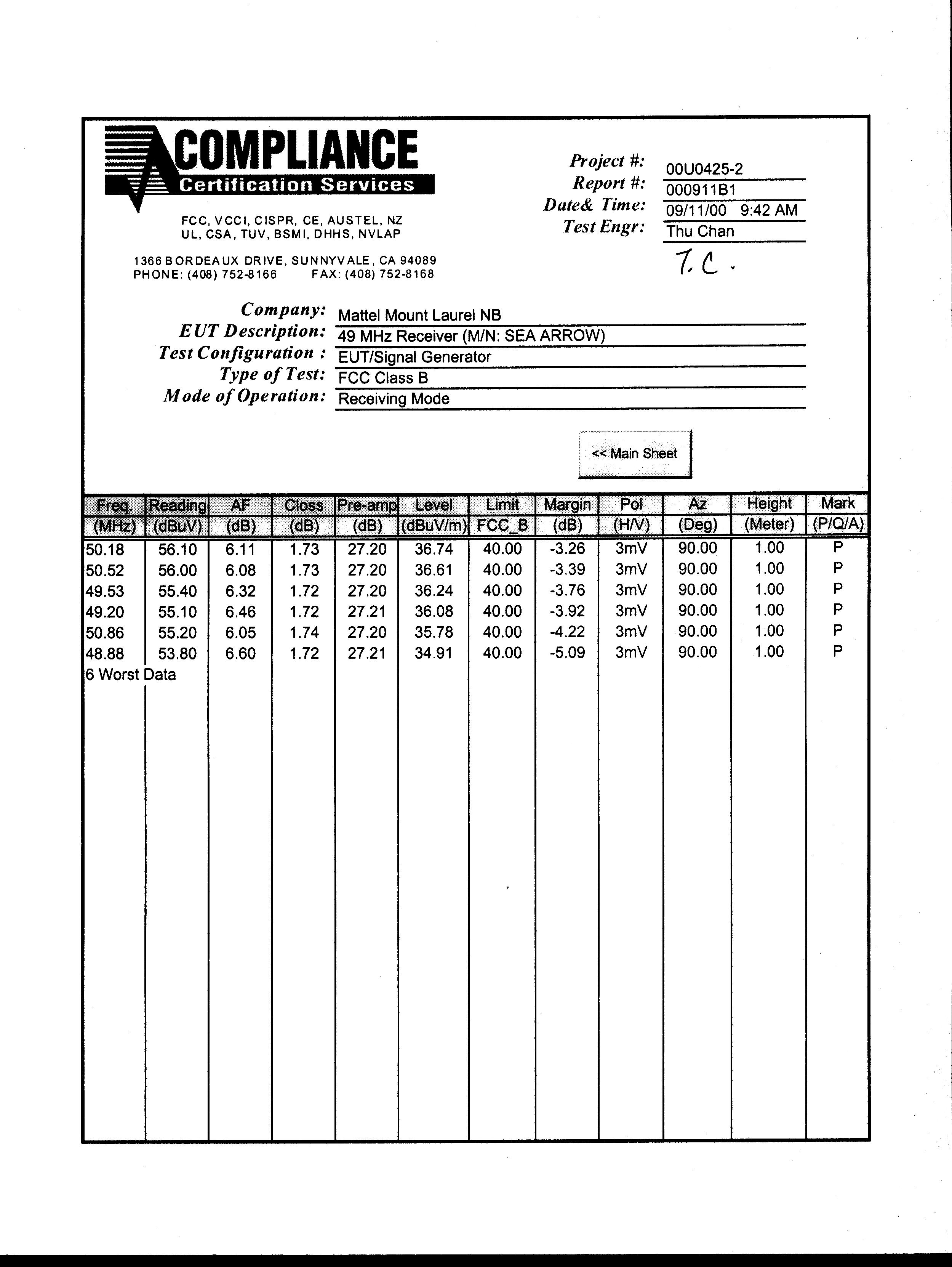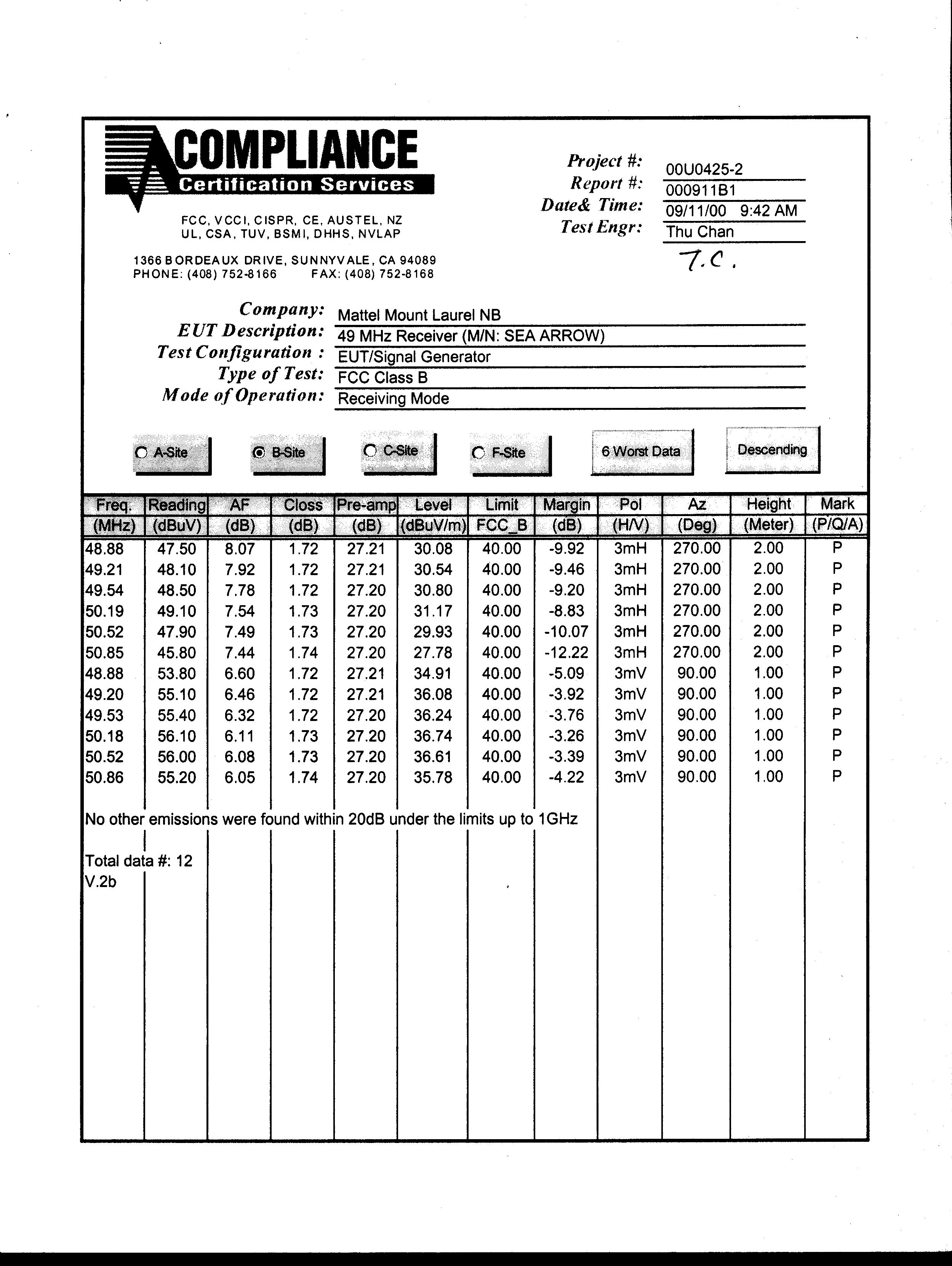 | Test Firm Contact | Steve Cheng |