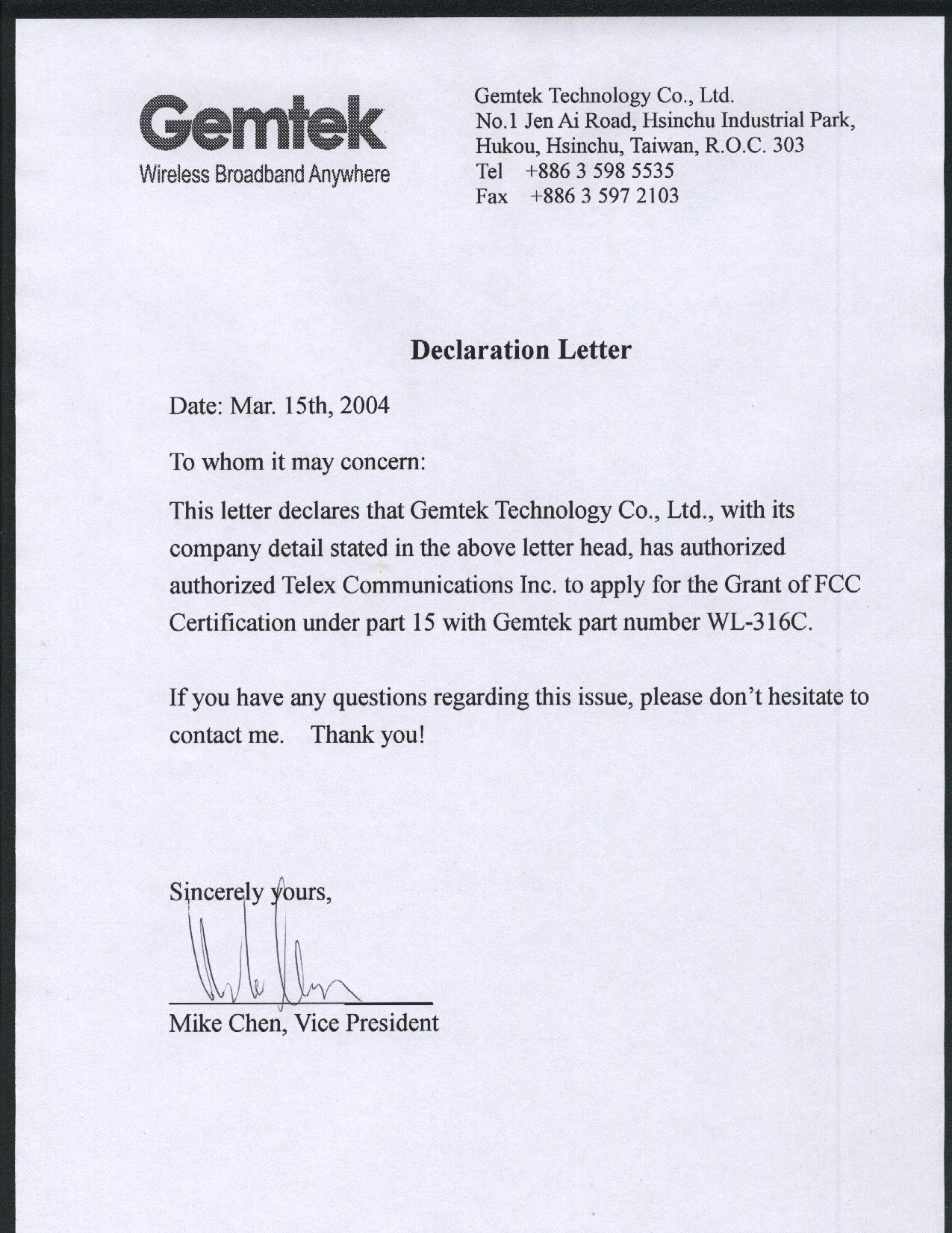 | Certified By | Paul Hoffmeyer – Antenna Engineering Manager |