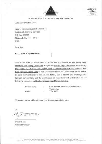 Golden Eagle Electronics Manufactory Ltd TFY3820RTB