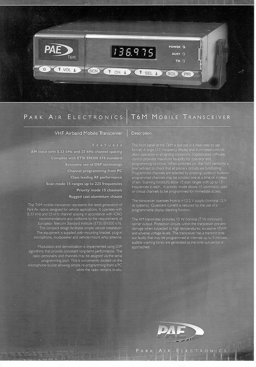| Equipment | VHF Airband mobile transceiver |