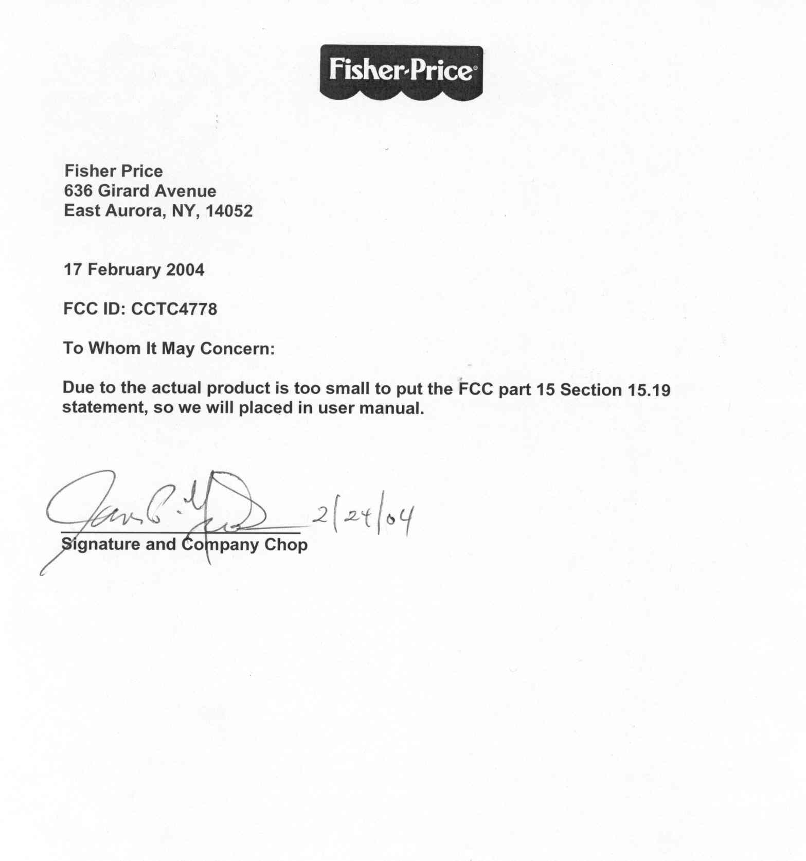 | Applicant Business | Fisher-Price Inc. |