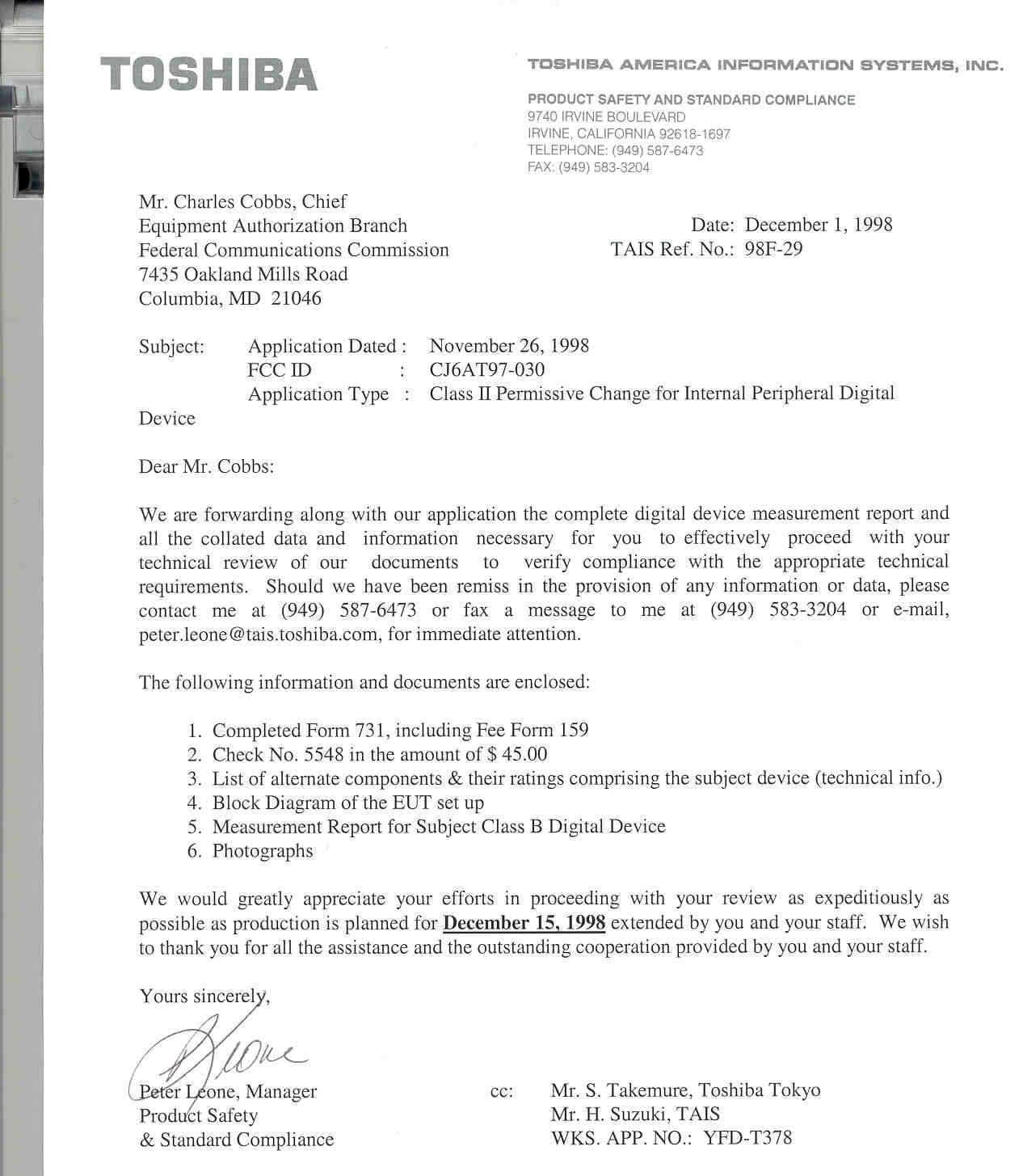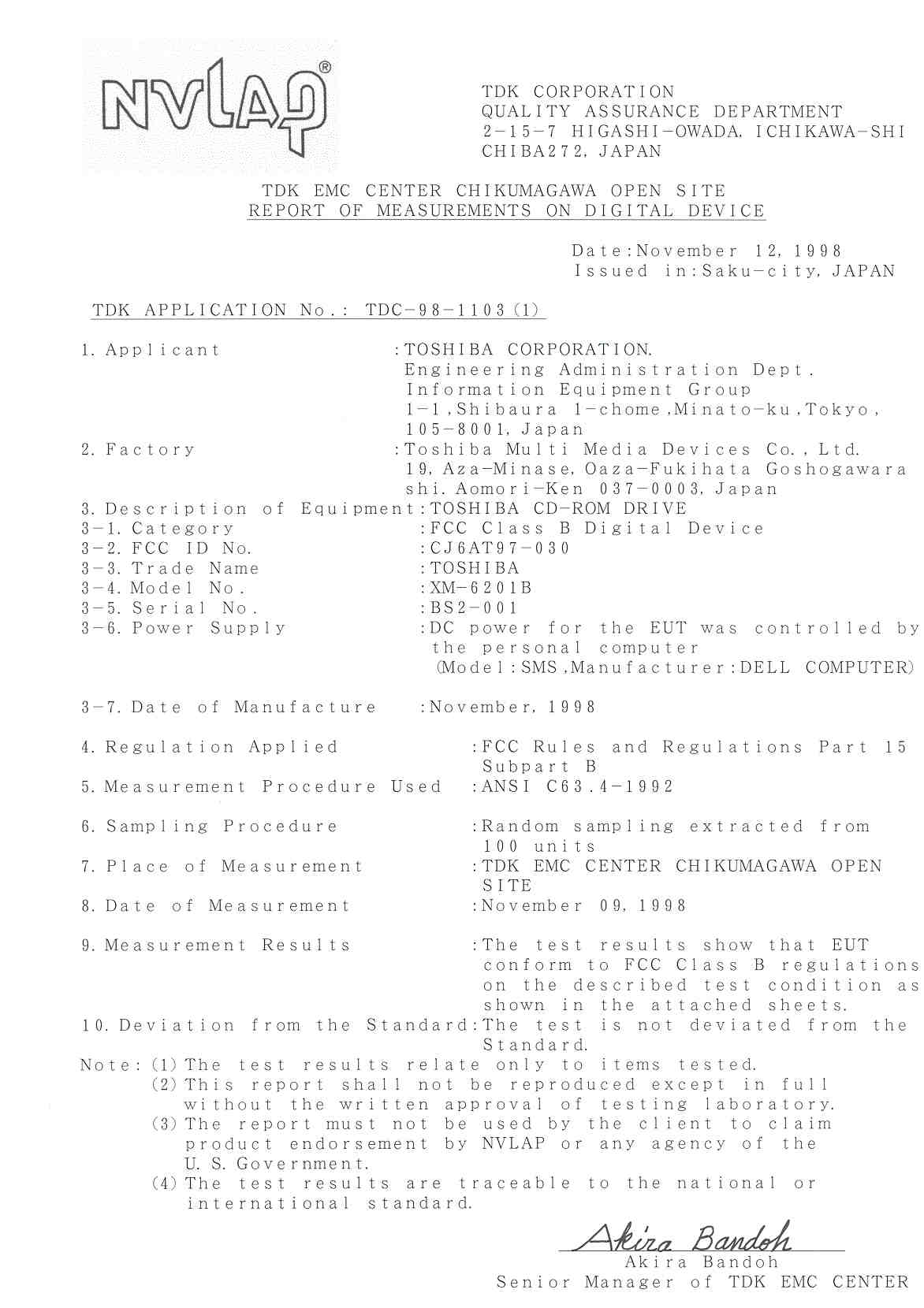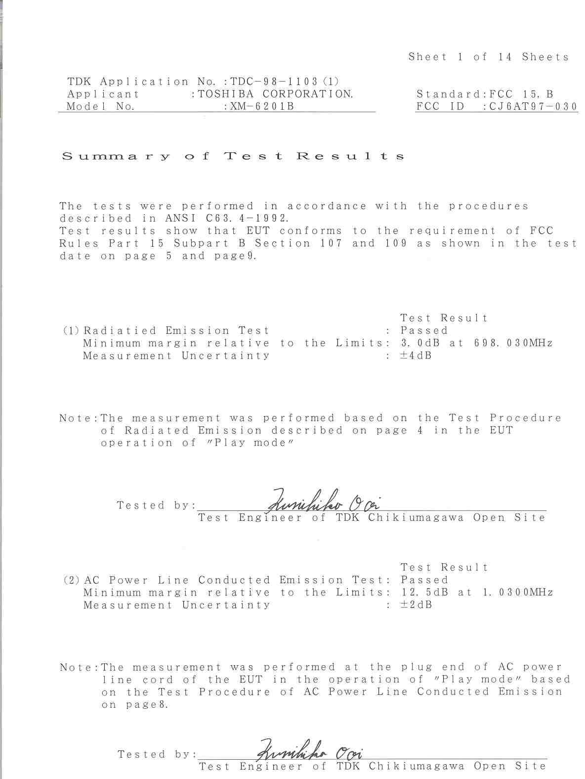 Toshiba Corporation AT97-030