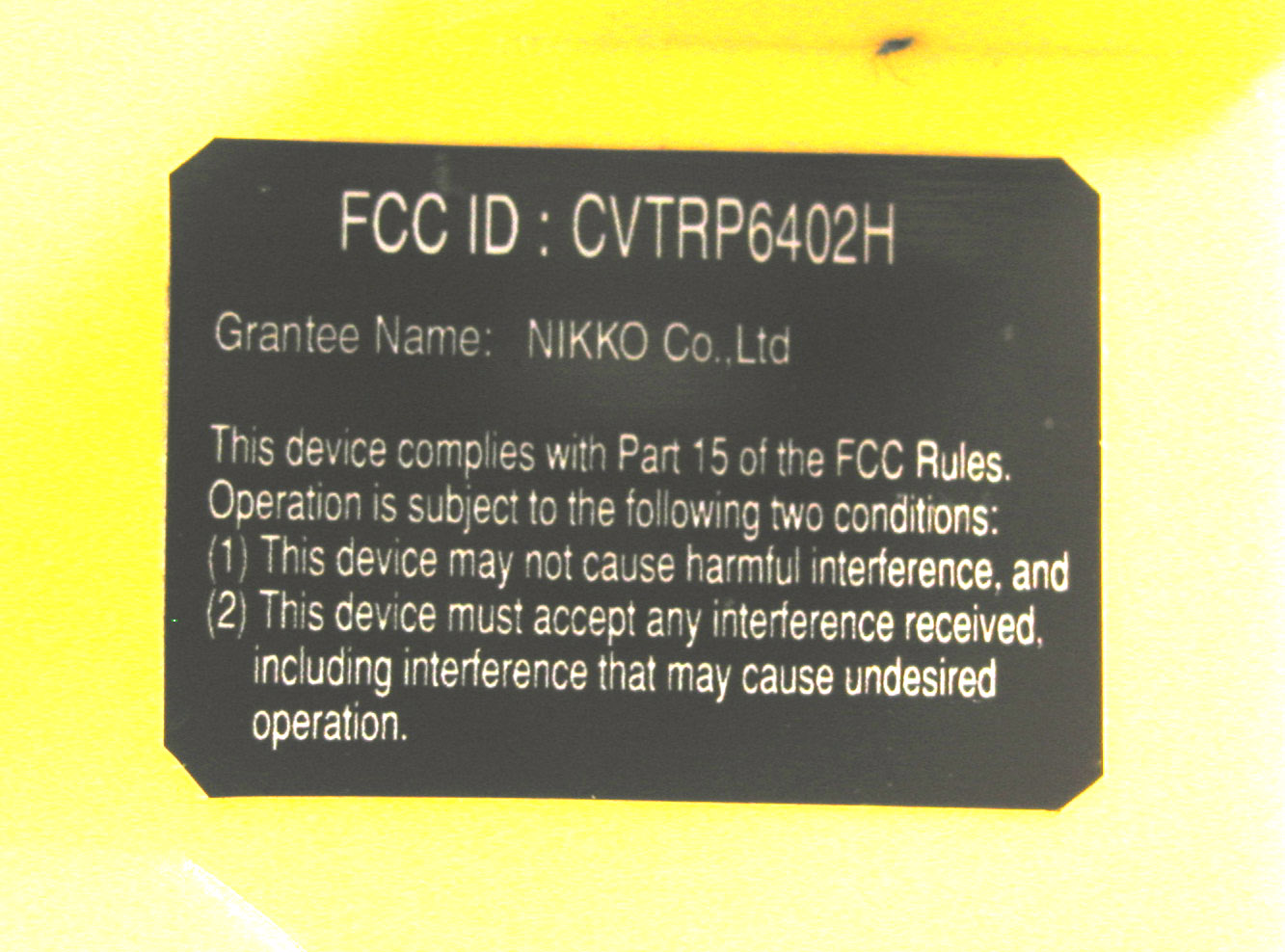 | Equipment | Radio Control Toy Receiver |