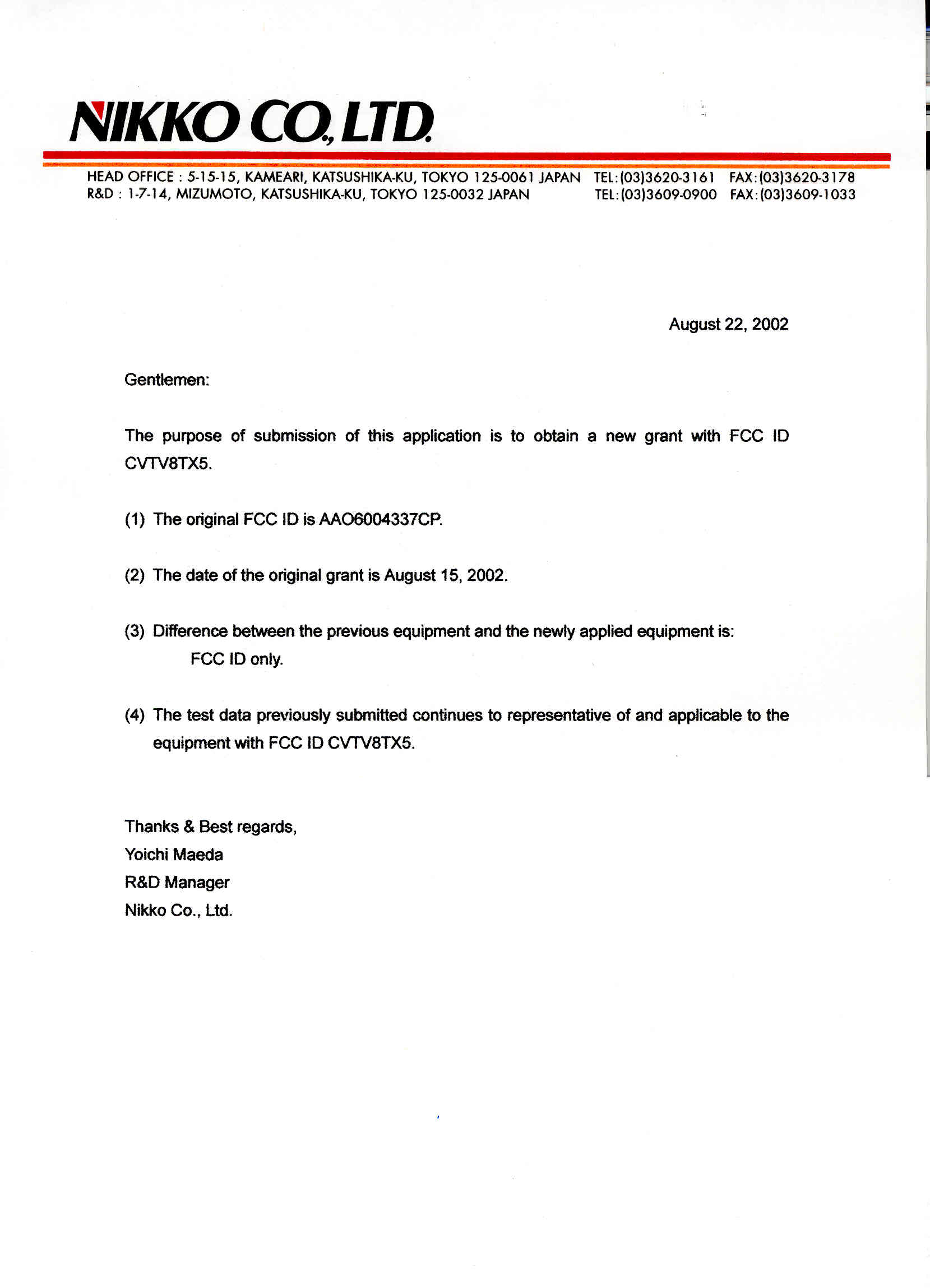 | Test Firm Contact | Katsumi Nishii |