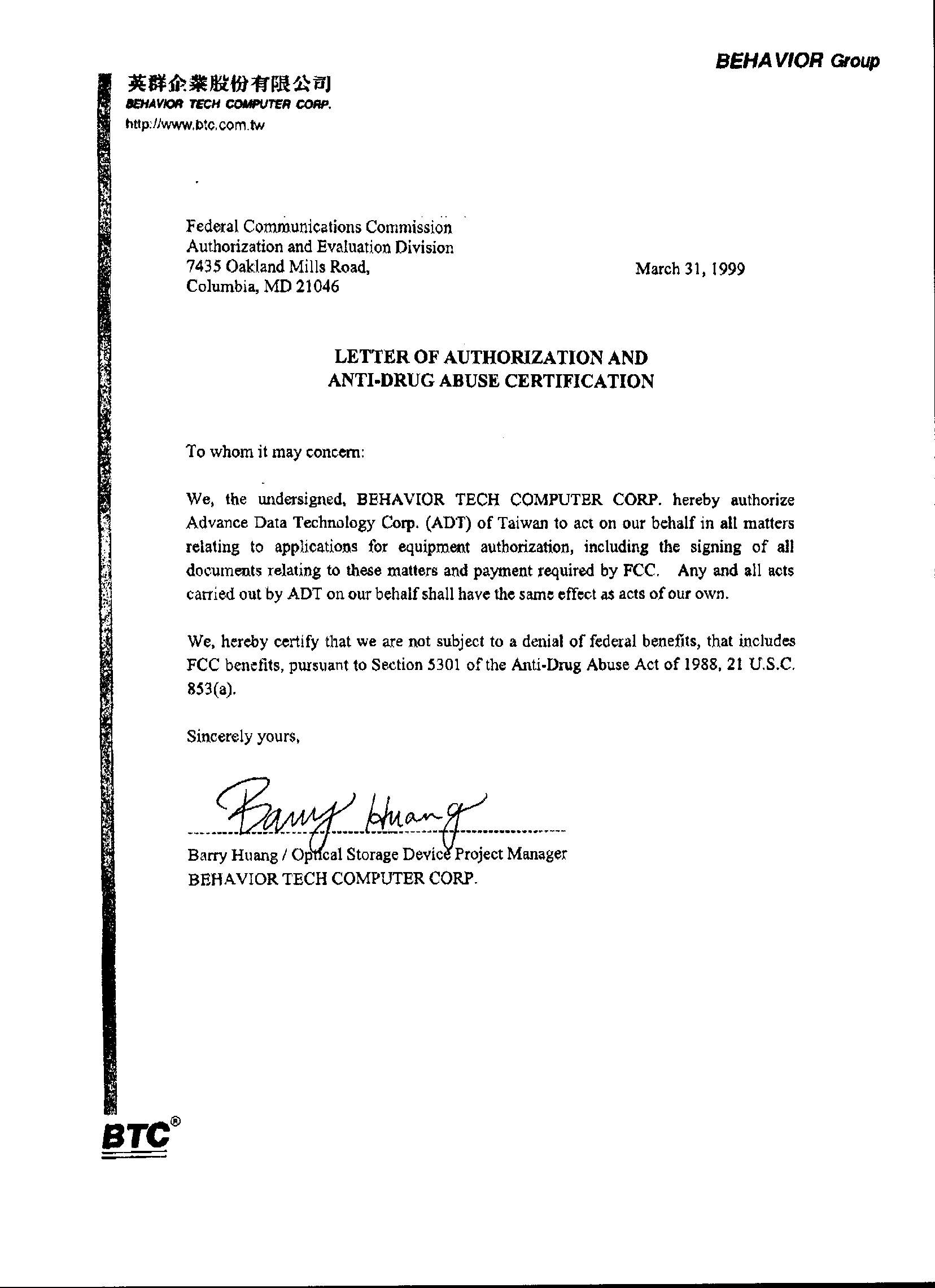 Authorization Letter
