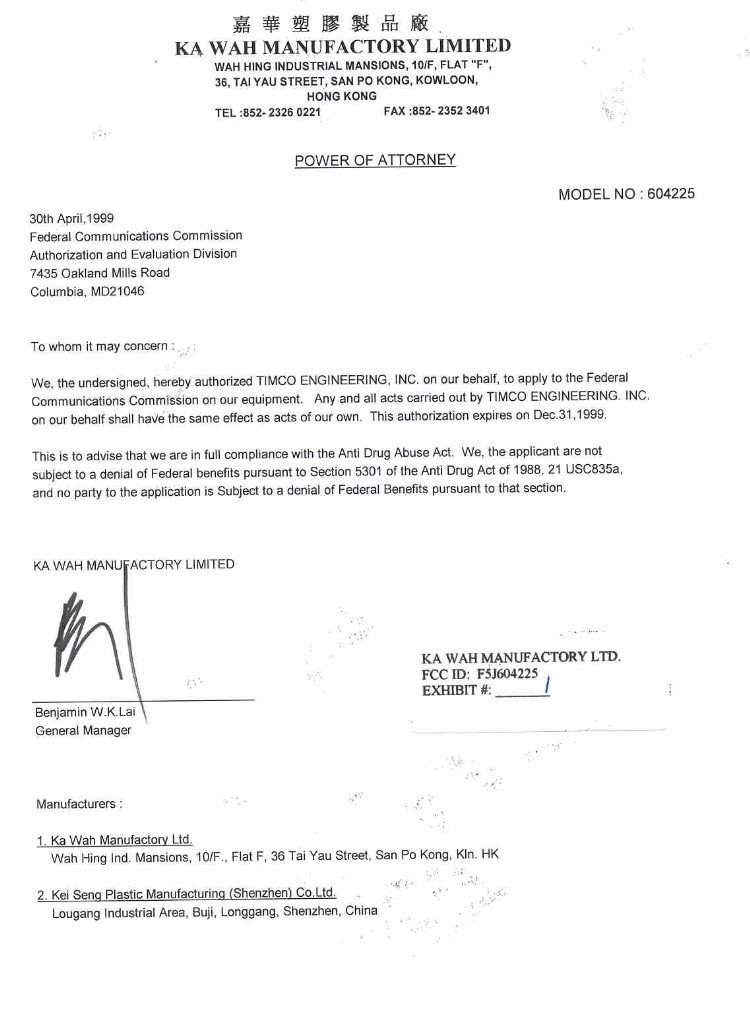 Ka Wah Manufactory Limited 604225