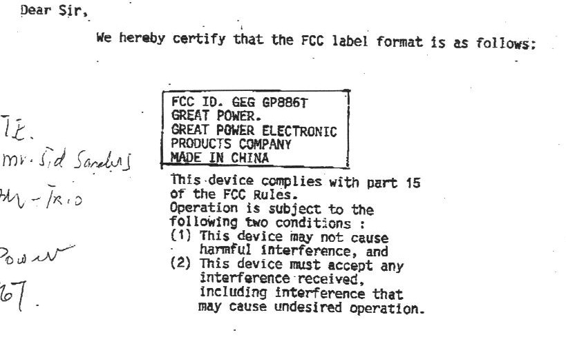 FCC ID LABEL SAMPLE
