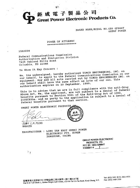 Great Power Electronic Products Co. Ltd GP886T