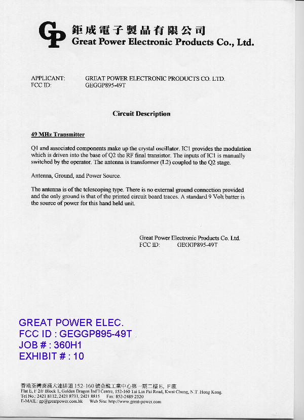 | Applicant Business | Great Power Electronic Products Co. Ltd |