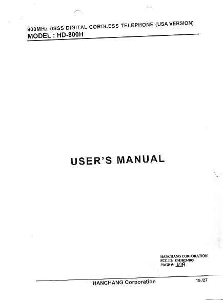 Users Manual page one