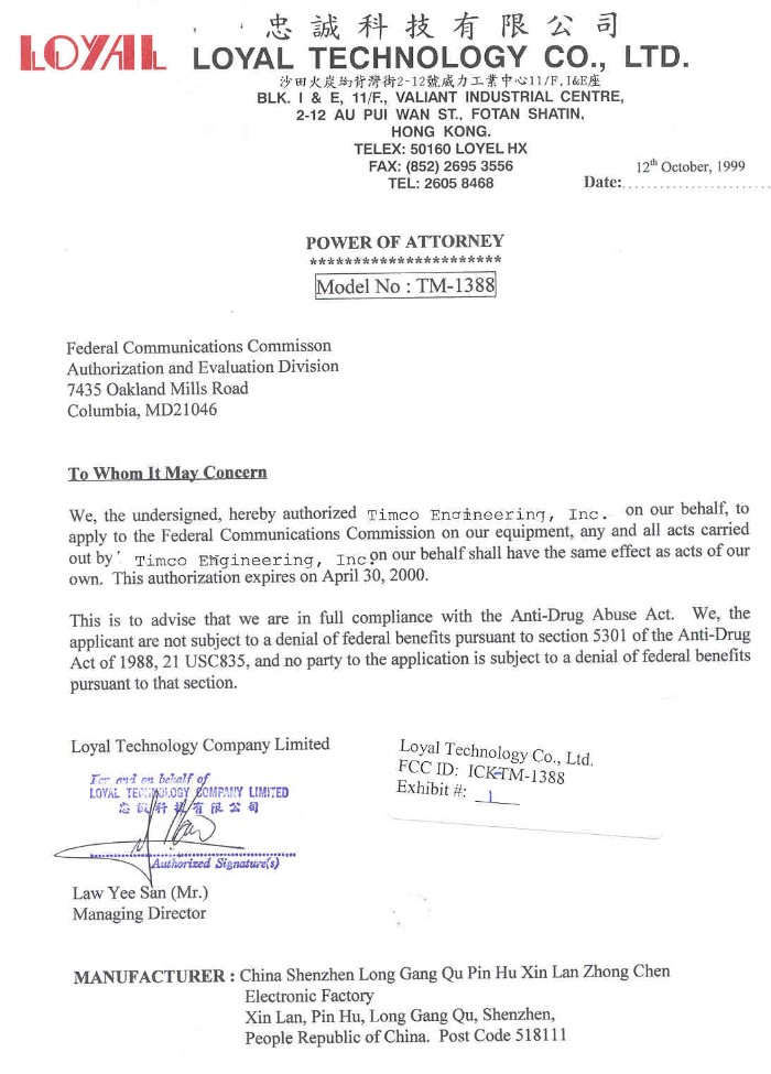 Loyal Technology Co Ltd -TM-1388
