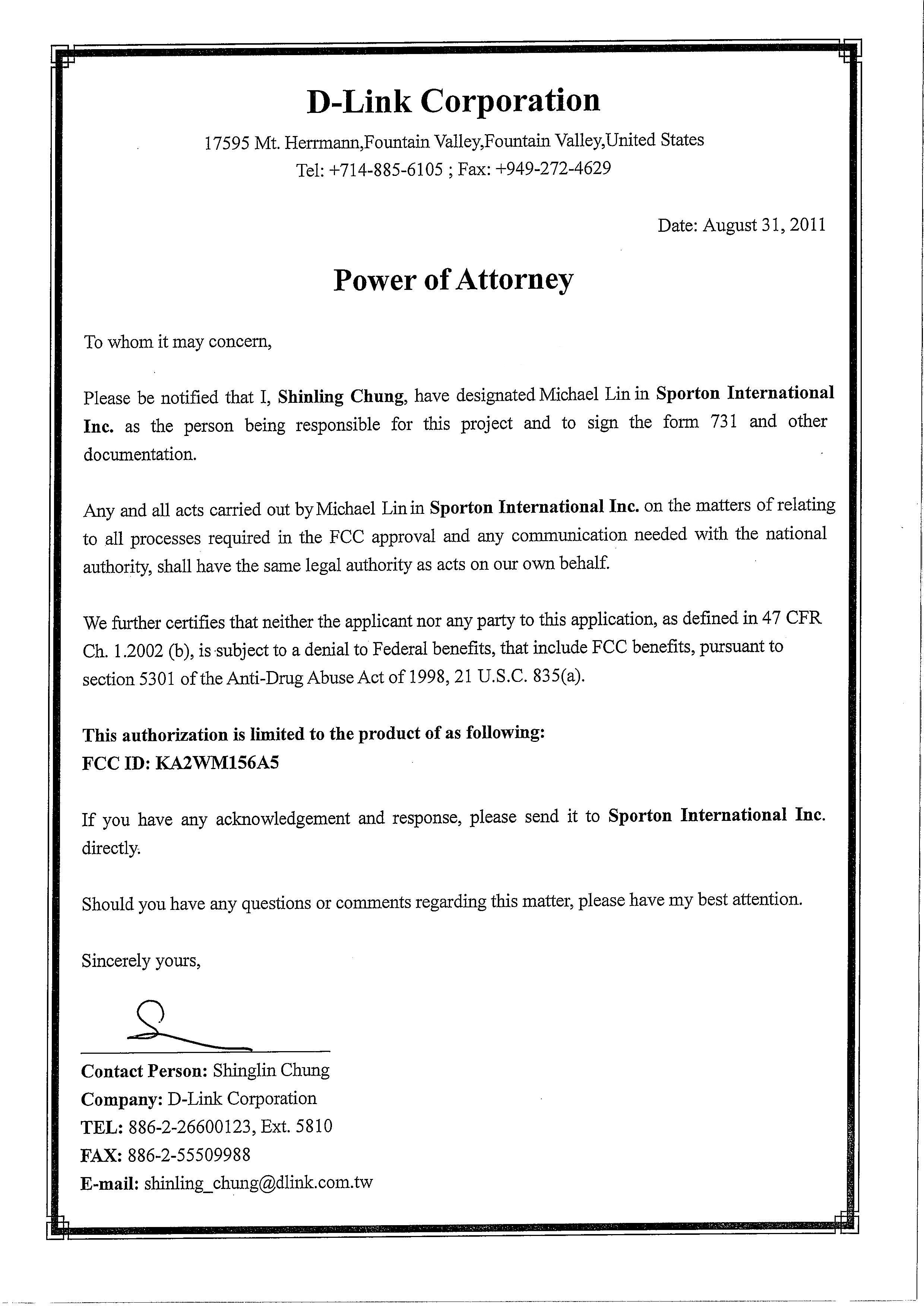 | Certified By | Michael Lin – Vice President |