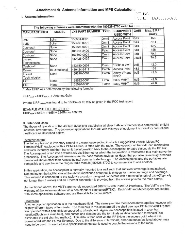 Attachment 4 Antenna Information and MPE Calculations