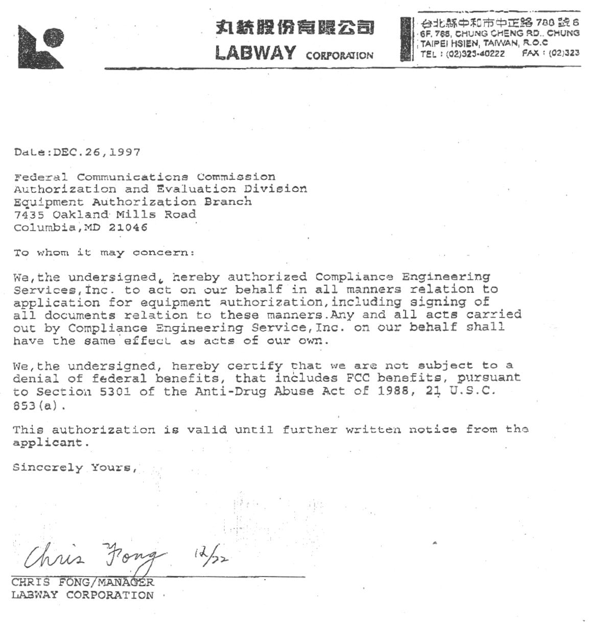 | Applicant Business | Labway Corporation |