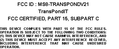 | Product Code | -TRANSPONDV21 |