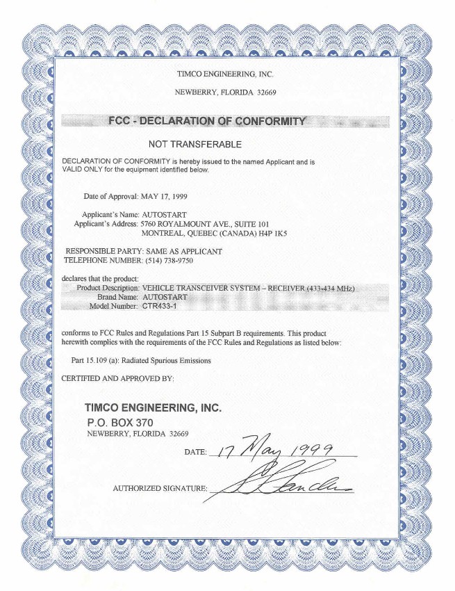 Copy of DoC for receiver