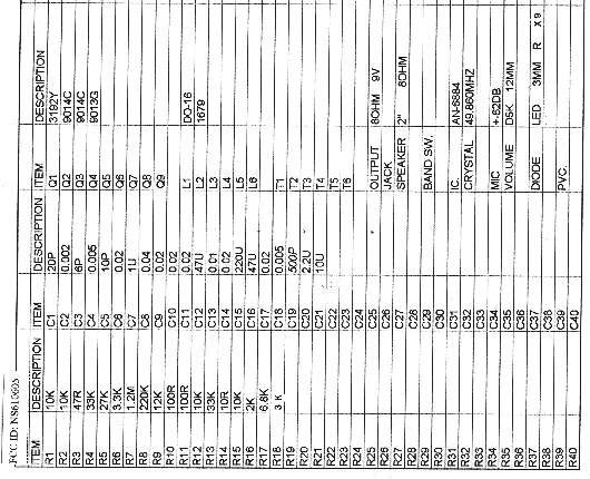Parts List/Tune Up Info