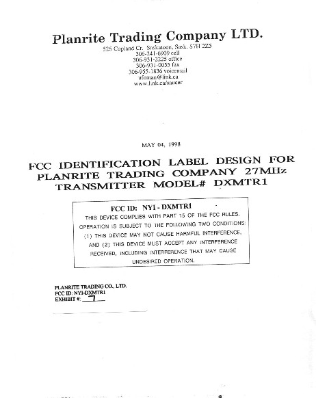 Planrite Trading Company Ltd -DXMTR1