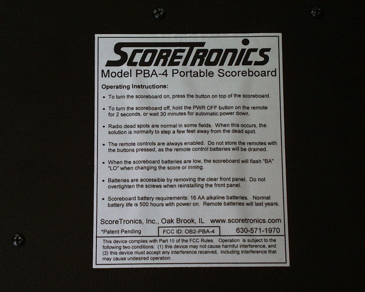 ScoreTronics, Inc. -PBA-4