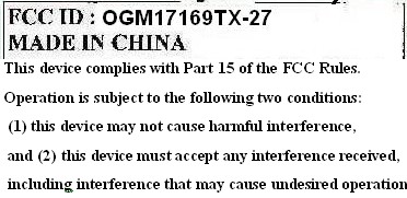 | TCB Scope | A1: Low Power Transmitters below 1 GHz (except Spread Spectrum), Unintentional Radiators, EAS (Part 11) & Consumer ISM devices |