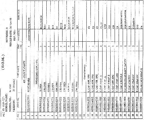 Parts List/Tune Up Info
