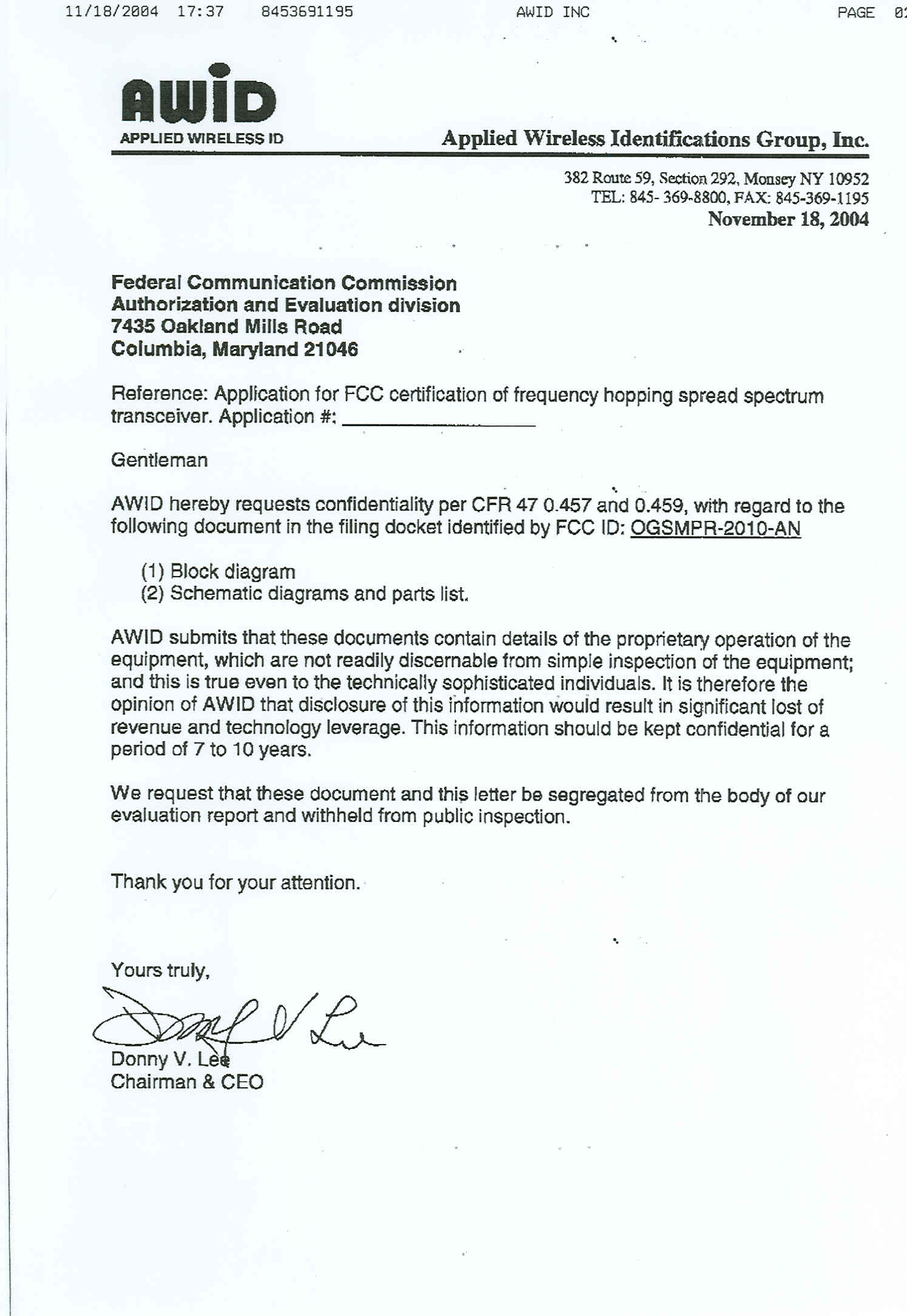 | Certified By | Donny V. Lee – Chairman and CEO |