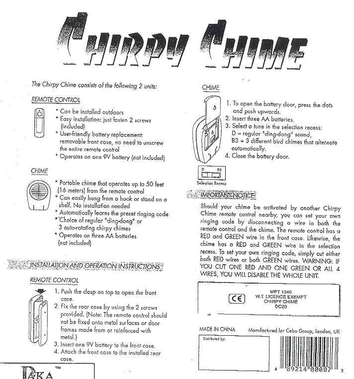 R/C Transmitter for Door Chime