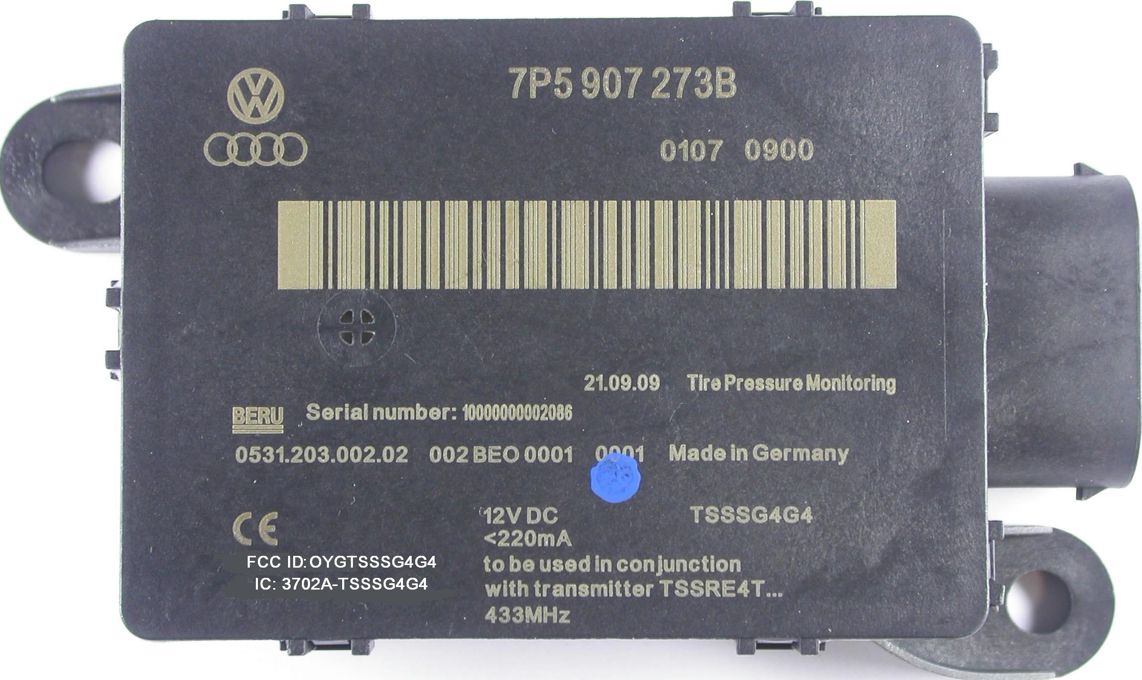 | Equipment | Tyre Pressure Monitor System |