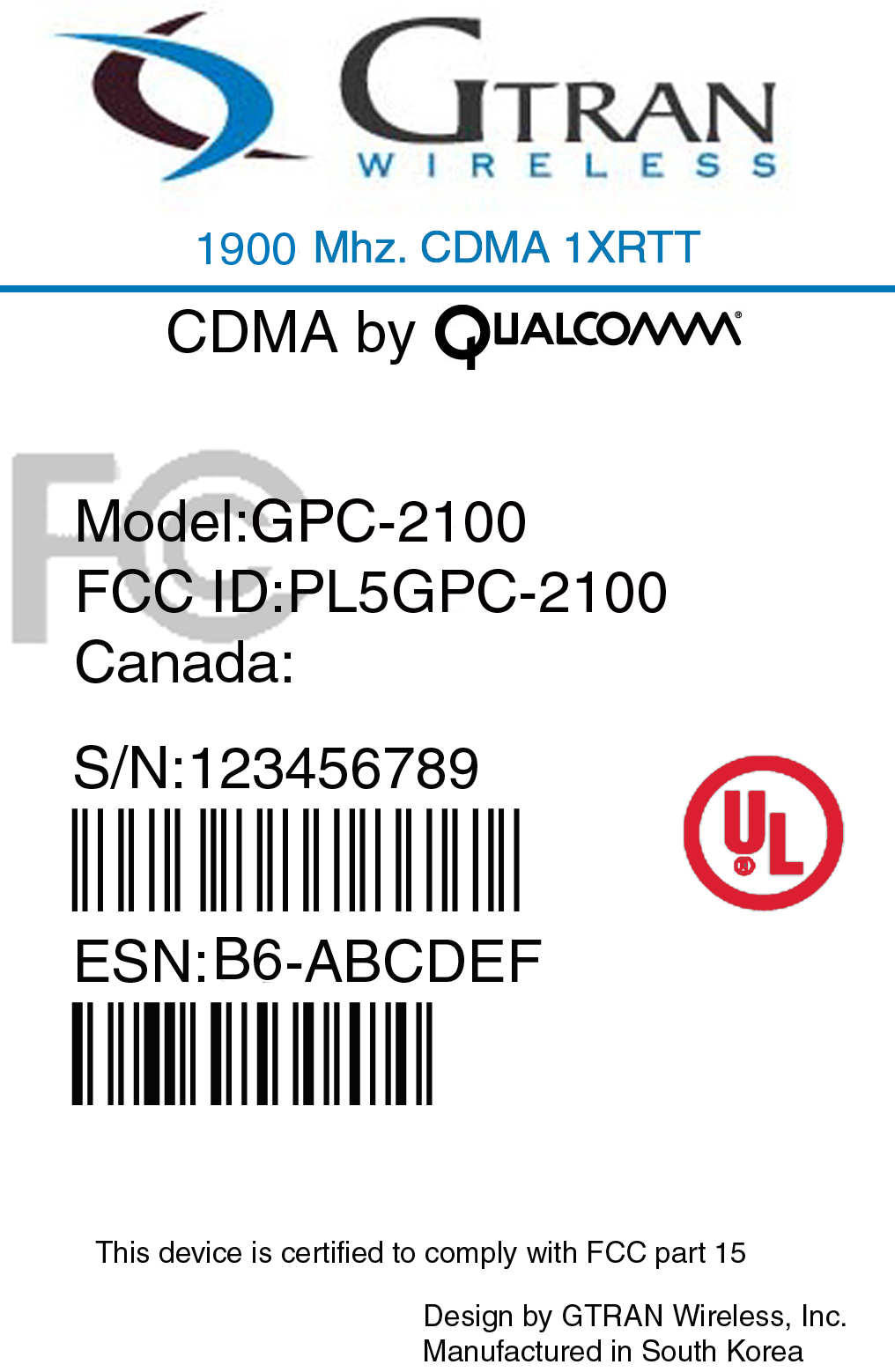 | Applicant Business | GTRAN Wireless, Inc. |