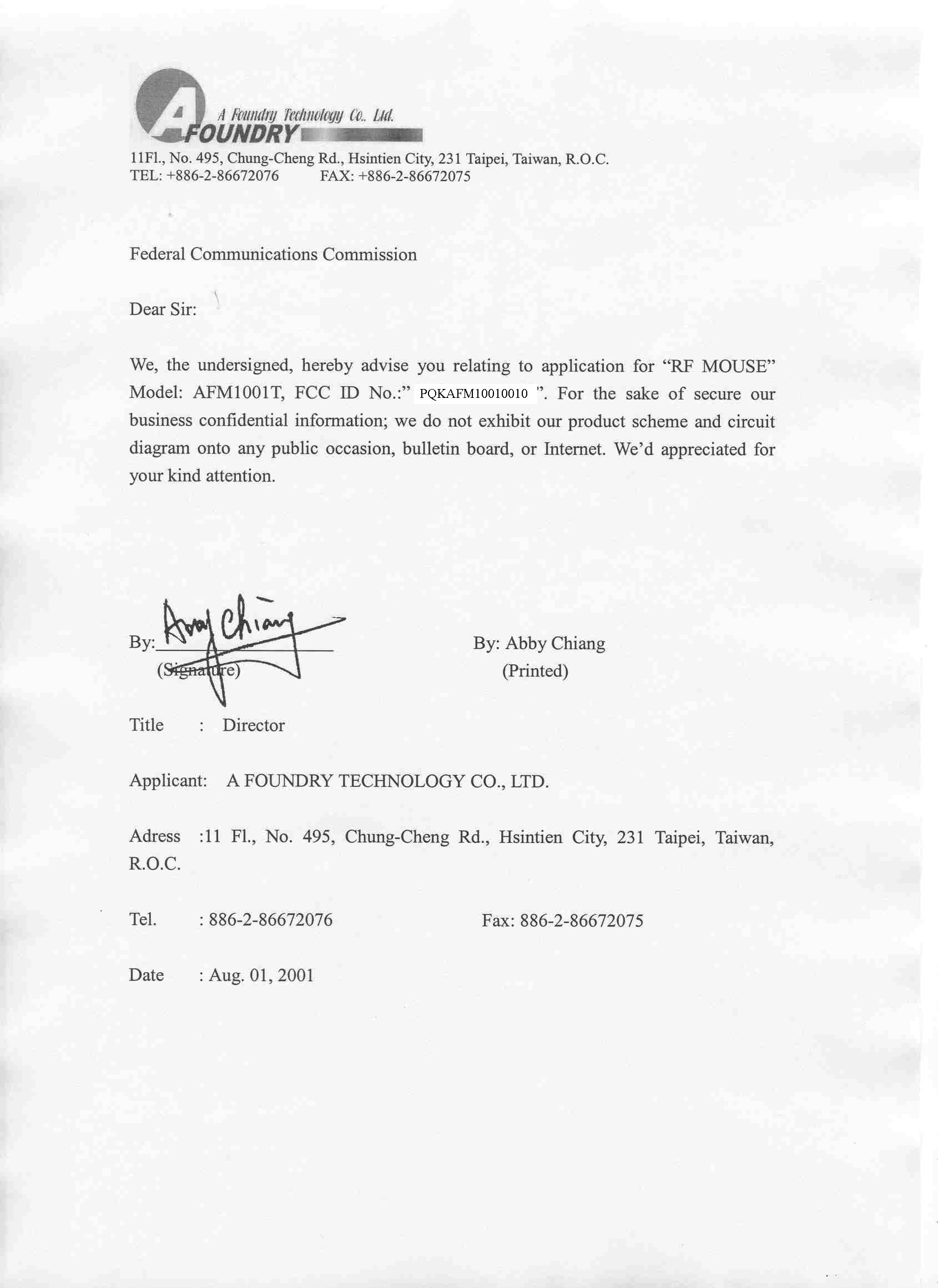 | Applicant Business | A Foundry Technology Co., Ltd. |