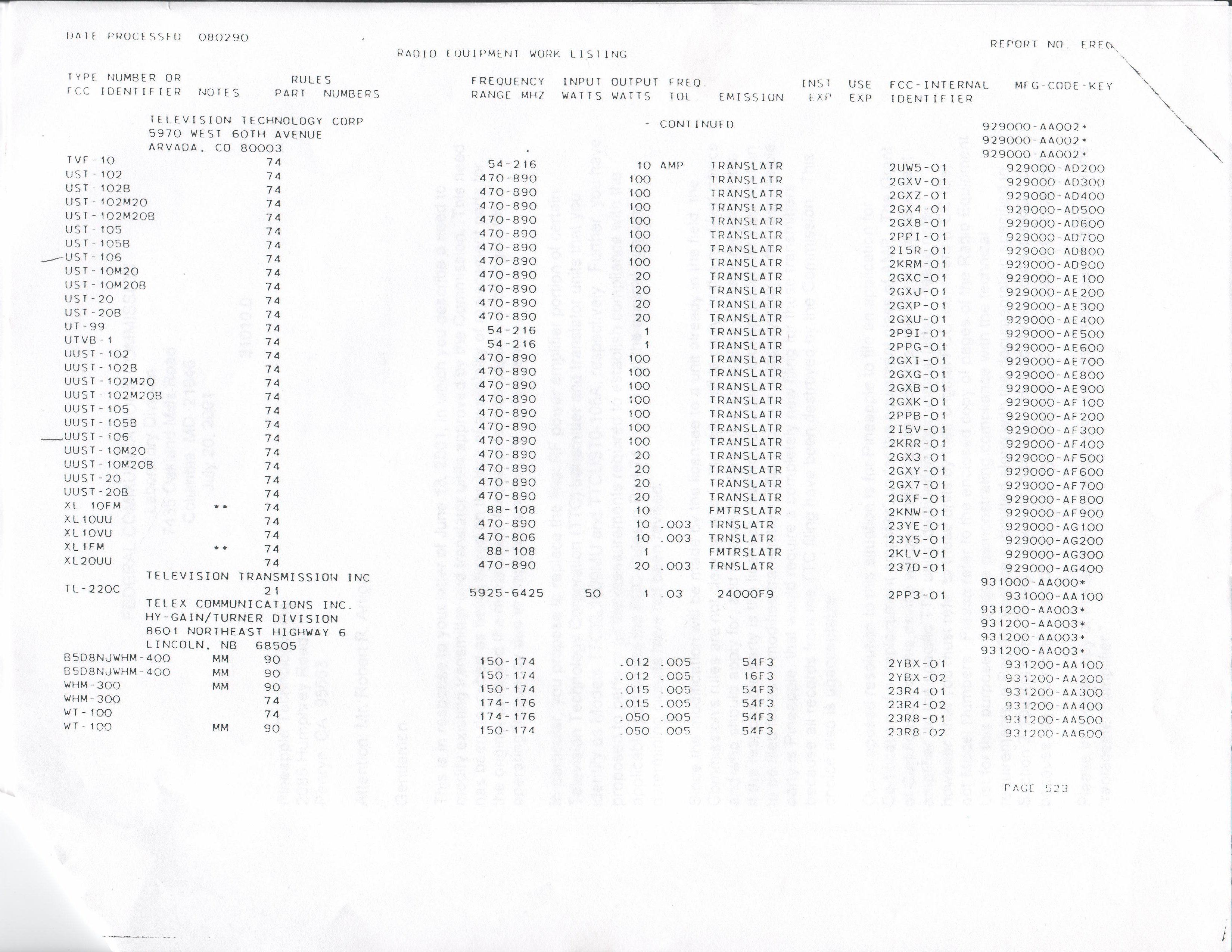Letter to identify FCC ID numbers that retrofit kit addresses