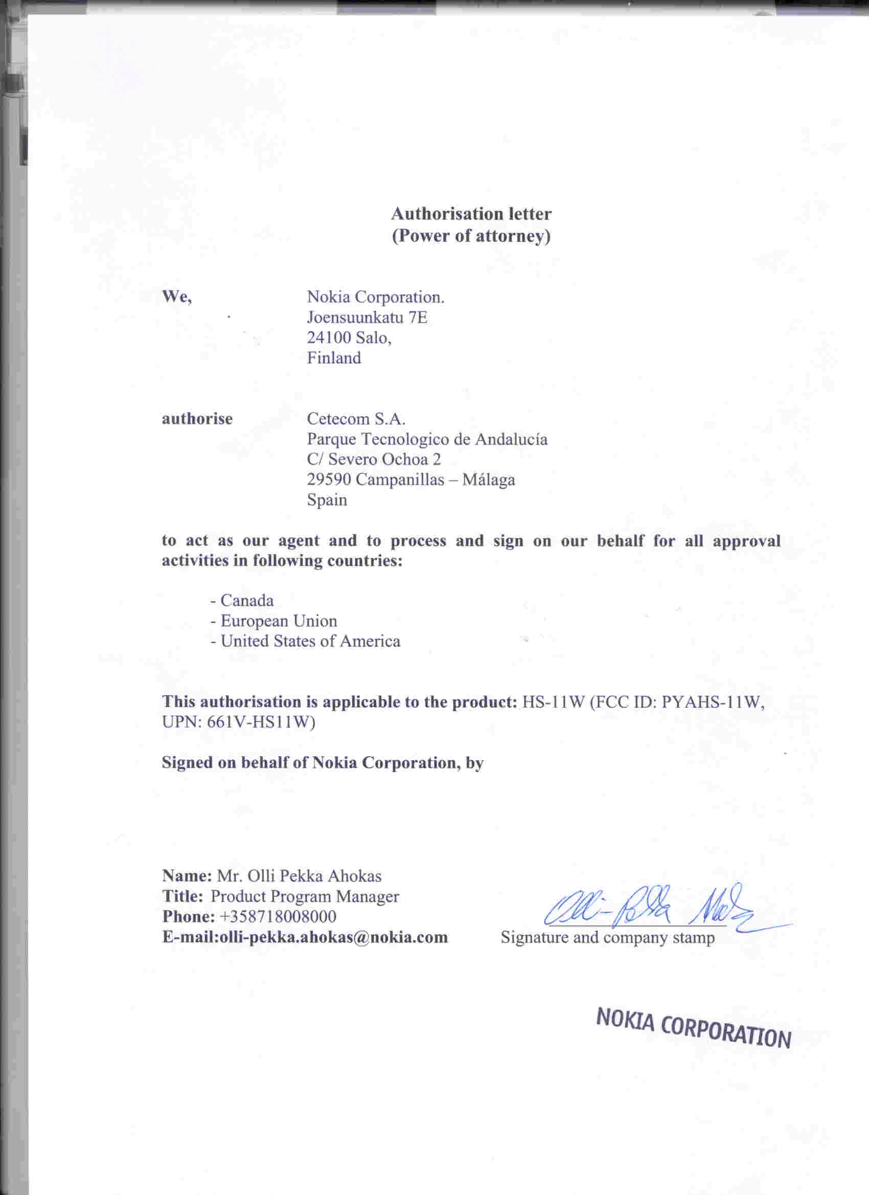 | Applicant Fax | +358 7180 44122 |