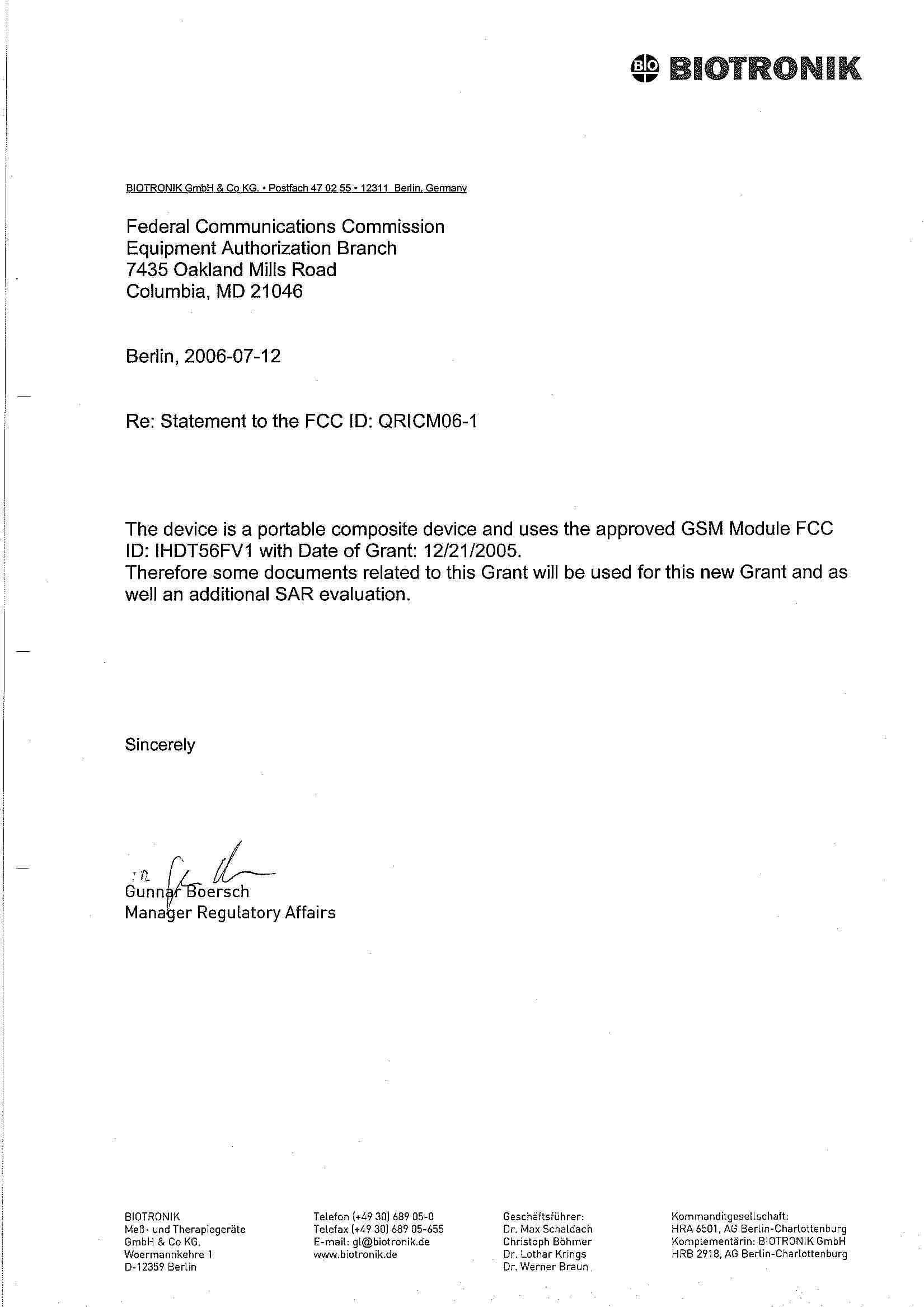 | Applicant | Gunnar Boersch – Team Manager Regulatory Affairs |