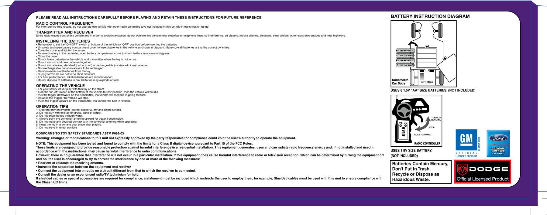 | Equipment | 12" RADIO CONTROLLED VEHICLE FULL FUNCTIONED |