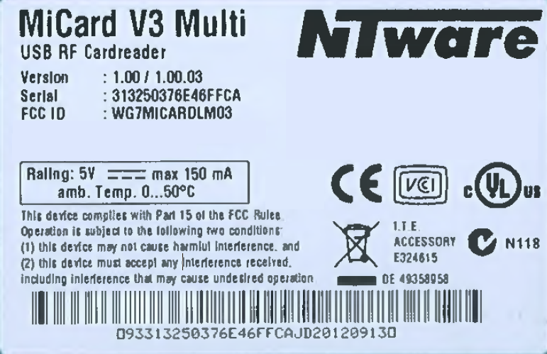 | Equipment | USB RF-Cardreader MiCard V3 |