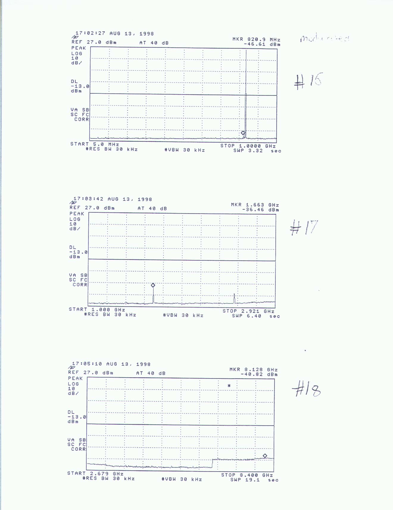 SPURIOUS EMISSION AT ANTENNA TERMINALS PLOT 16 TO 18
