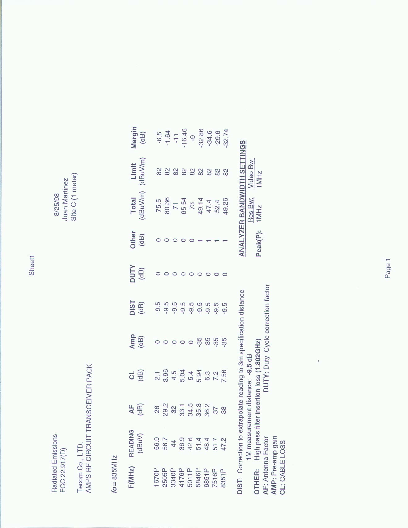 FIELD STRENGTH OF SPURIOUS RADIATION WORKSHEET