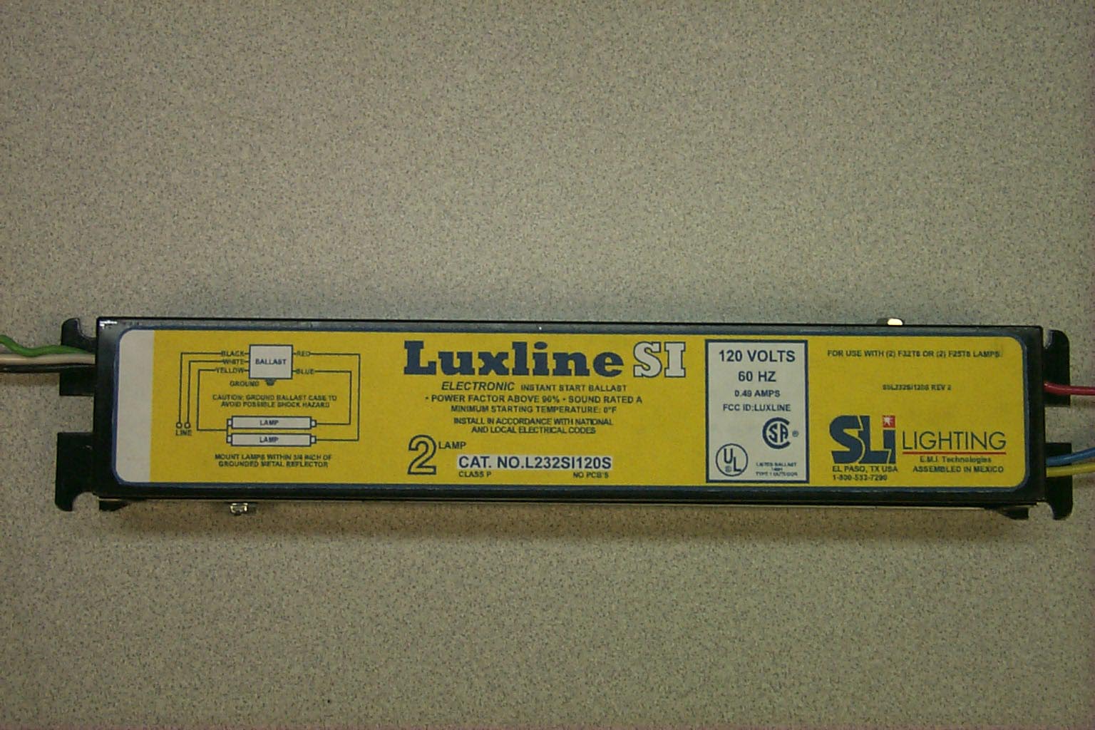 | Equipment | 2 Lamp-T8 Electronic Instant Start Ballast |